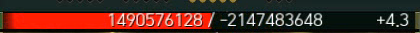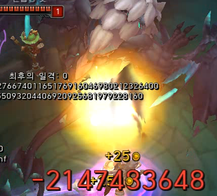 21억이 되는 순간 체력바가 확 깎이면서 마이너스 체력이 된다