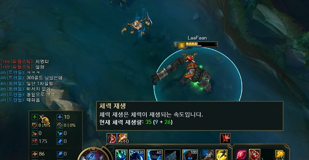 화제글에선 문도였지만 트런들을 선택한 이유는 W스킬에 치유량 증가 20% 스킬이 있기 때문입니다.