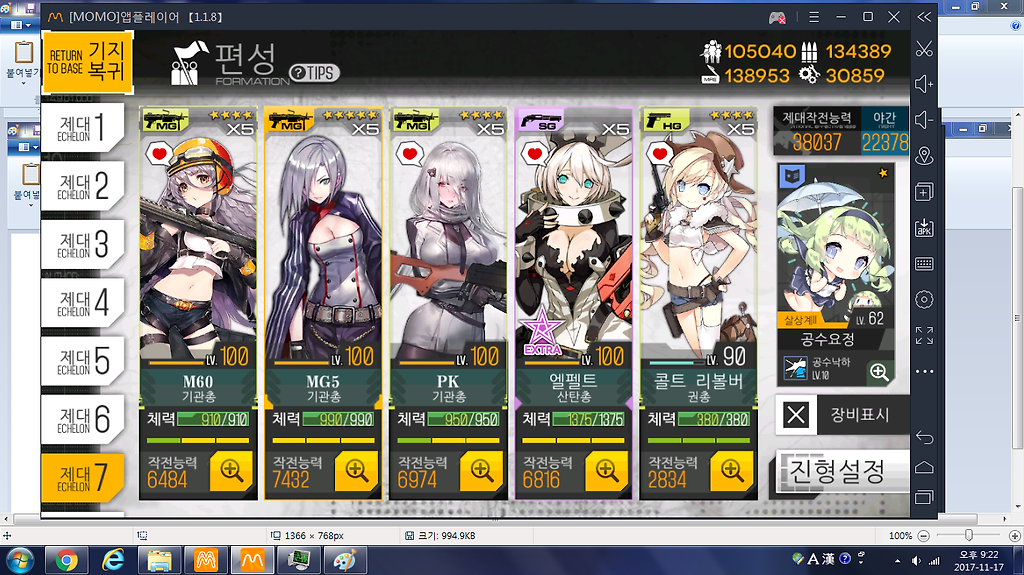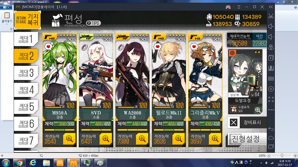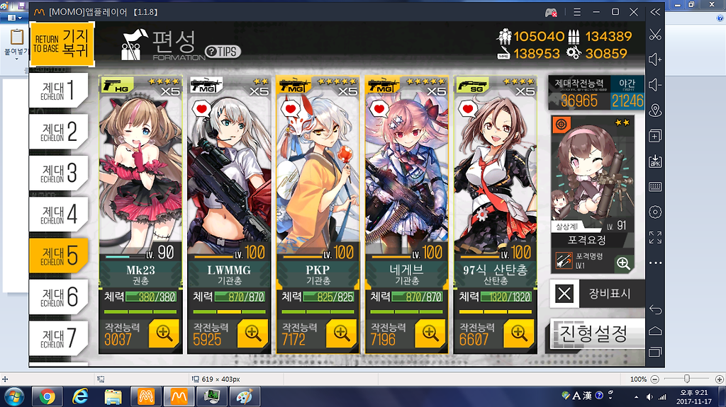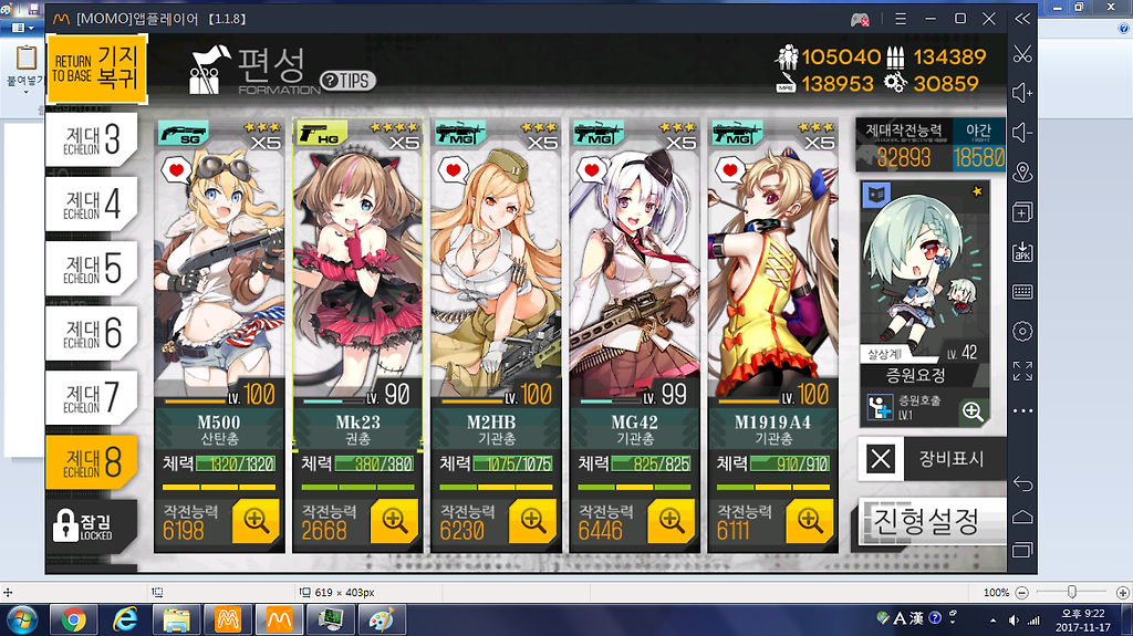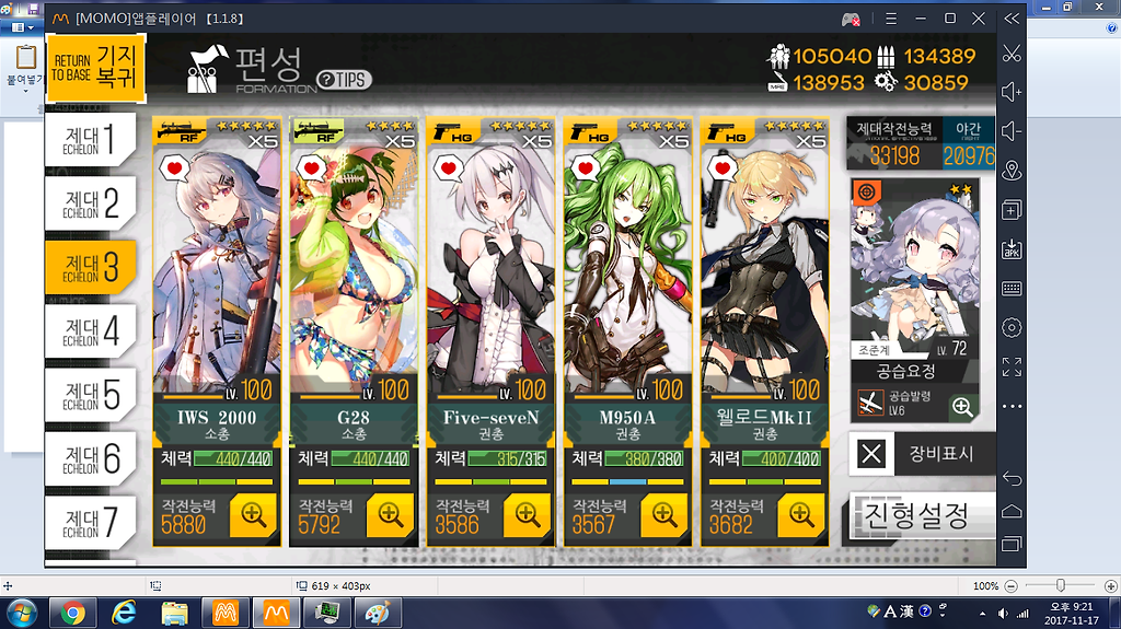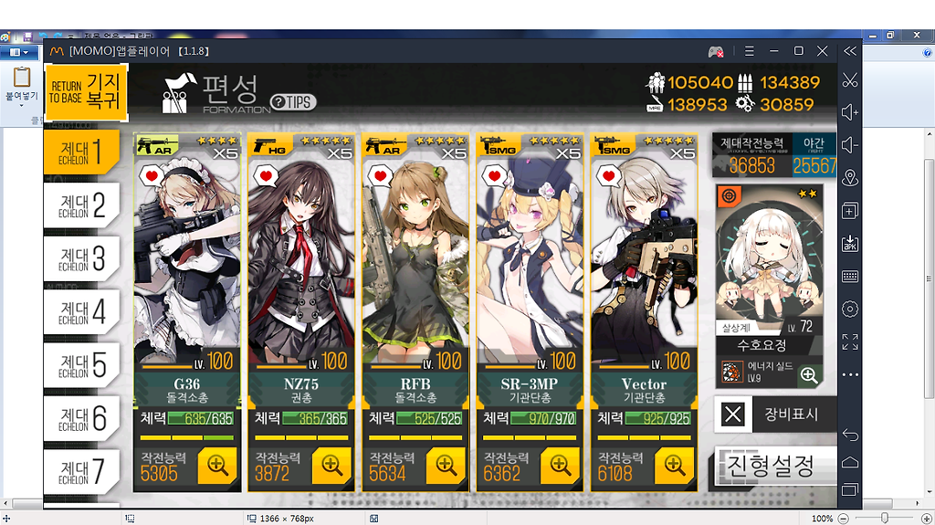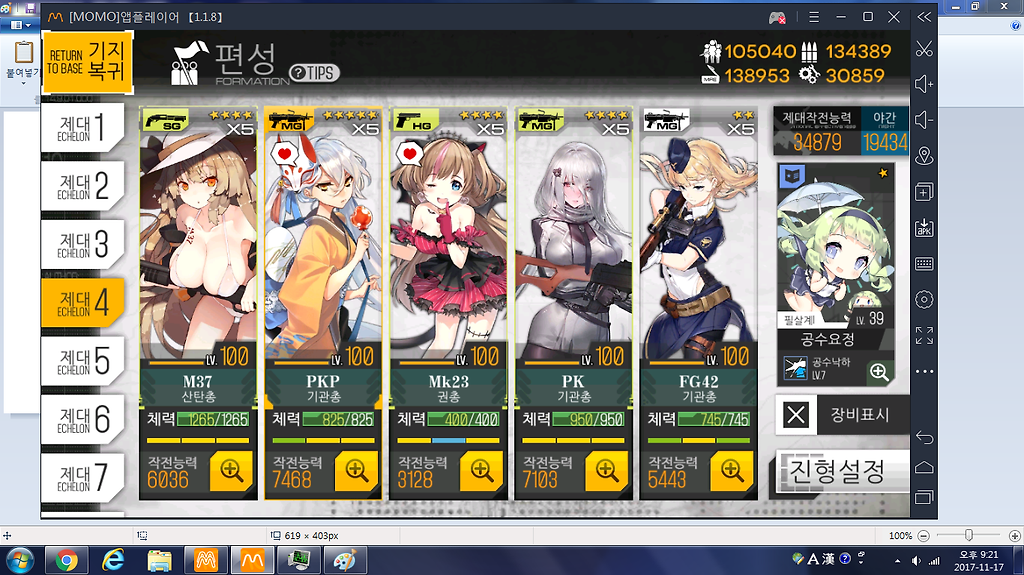 ※본문에는 MG제대 위주로 구성했지만, 그리고 위에서 언급했지만 다시 한번 언급하면 AR SMG기반 조합도 충분히 써도 됨. 단 스킬작 장비강화, 그리고 구성 인형도 전부 빵빵한 상태에서 쓰는 편이 좋음.