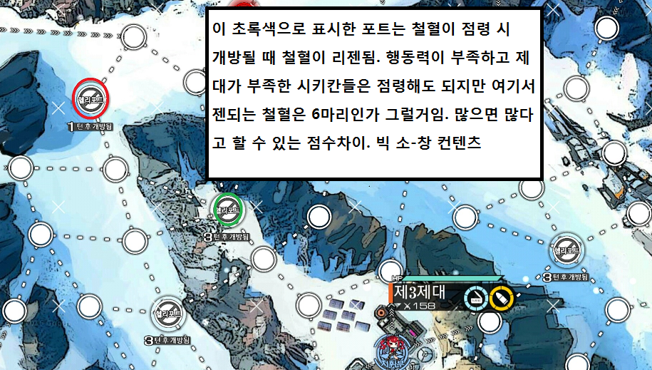 -맵에 돌아다니는 철혈은 없어지지 않는다. 우리 진영 측 포트를 점령하려고 하는거 아니면 신경쓰지 않고 올때까지 냅 둬도 된다. 제일 중요한 것은 포트정리.