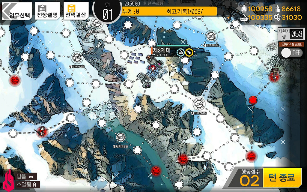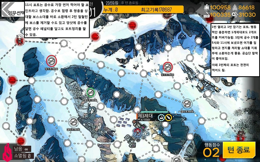 -5시와 11시 잡몹전담소대의 경우 초반에 전투횟수를 잘 조절해서 탄약관리를 잘할 것. 초반에는 탄도 딸리고 행동력도