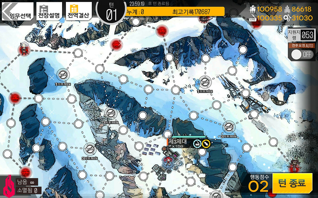 20턴에 턴 종료를 하면 철혈이 포트에서 리젠되고 이동한 후에 끝이 난다.