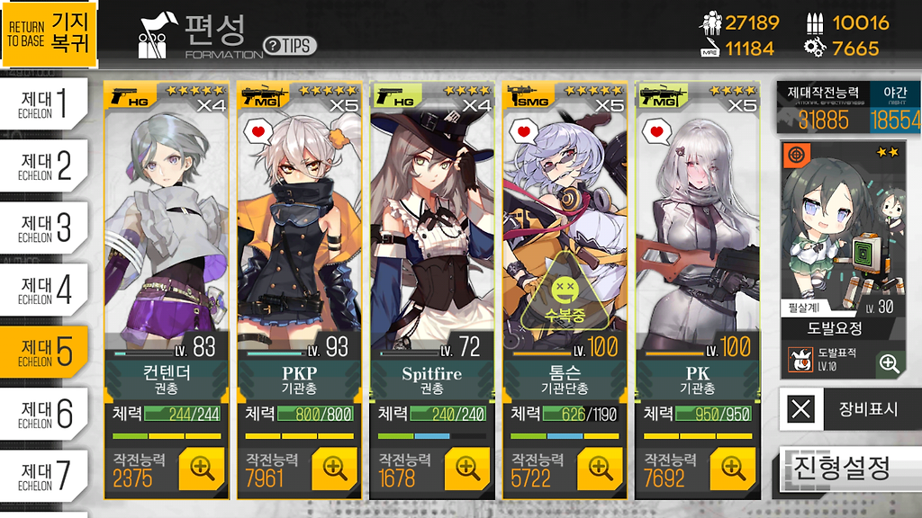 2. 5링 1SMG(회피) 1AR(딜링) 제대 (기관총쥬피터 2마리 잡음)