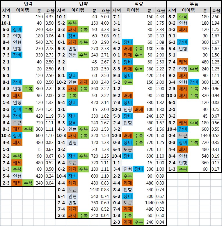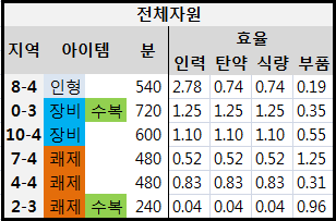 해당 자원들 중 하나라도 안주는 지역은 제외한 순위입니다.