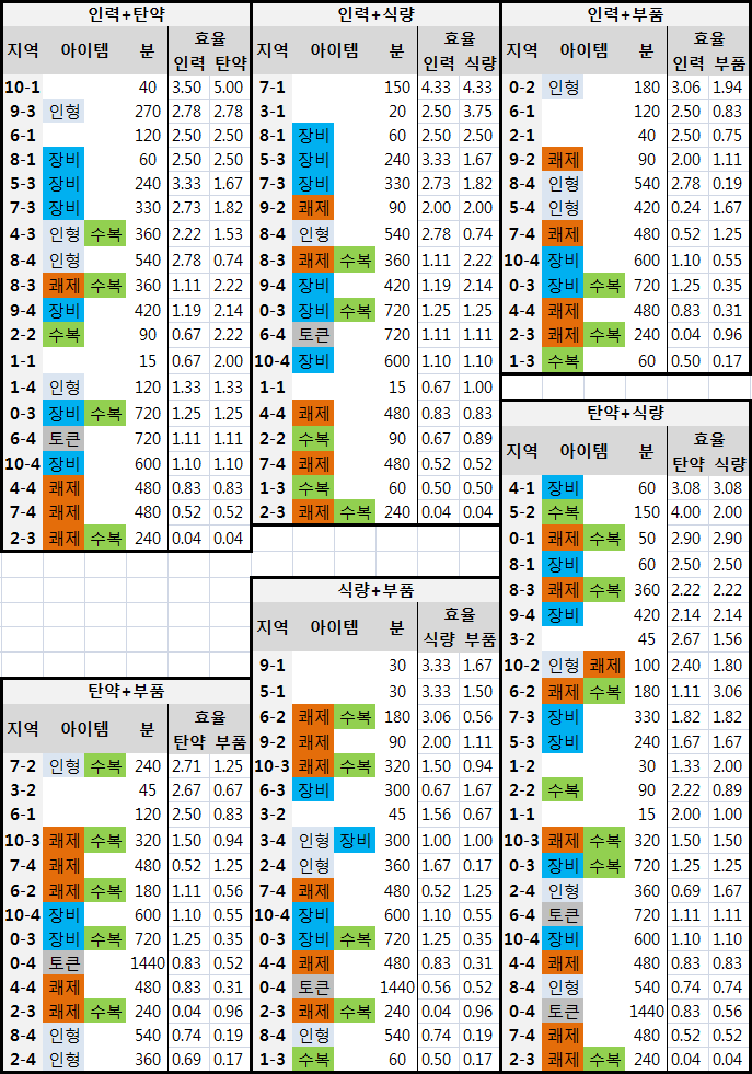 [소녀전선] [군수지원]소녀전선 별 효율 및 소녀전선 표