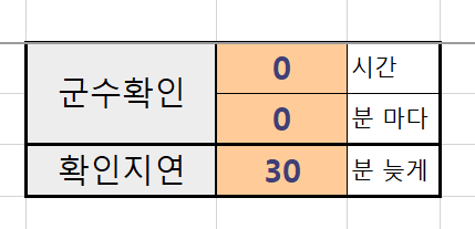 ii) 그냥 수시로 보는데 10분정도 늦게 보는 경우가 있다면 군수확인 시간은 0분, 확인지연 시간은 10분으로 입력하시면 됩니다.