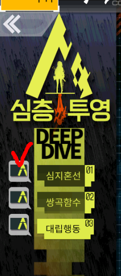 딥다이브 메뉴화면에 보면 심지혼선, 쌍곡함수, 대립행동 이렇게 3가지 지역이 있는데