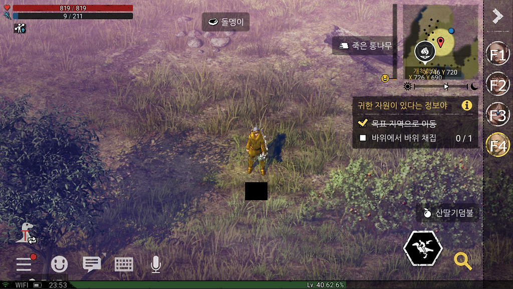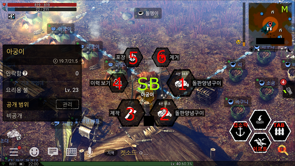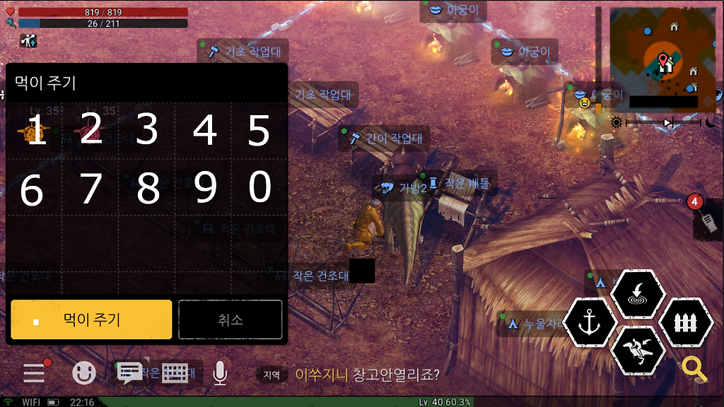 이부분은 펫 먹이 줄때도 사용하고 스테미너 부족해서 음식 먹을때도 사용합니다 (아래사진참조)
