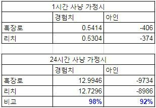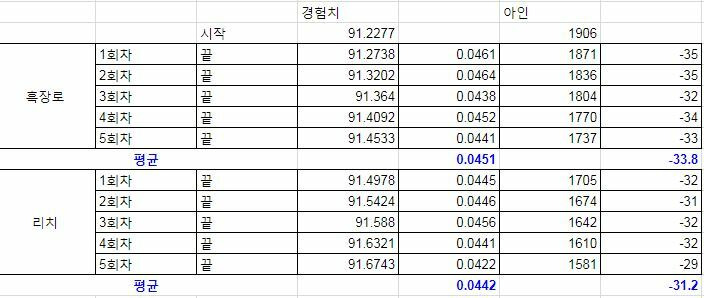 리치의 경우, 흑장로 대비 경험치 획득율이 2% 떨어지며 아인 소모율은 8% 감소합니다.