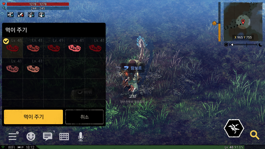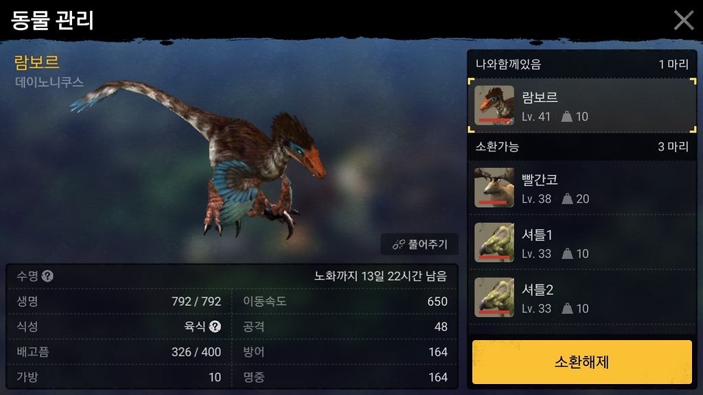 (펫은 육식공룡이 좋습니다.없다면 체력이 높은 펫으로)
