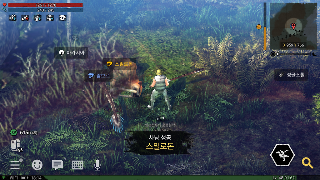 이방법으로 전투를 할시 위와 같이 공격력이 높아서 이섬에서 가장쎈 스밀로돈을 상대로도 피가 안달고 싸울수 있습니다ㅎ