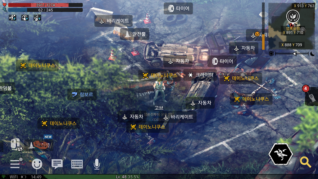 같은 방법으로 데미지가 높고 다구리를 까서 잘못하면 2초만에 줄을수도 있는 데이노쿠스를 이렇게 몰살 시킬수 있습니다^^