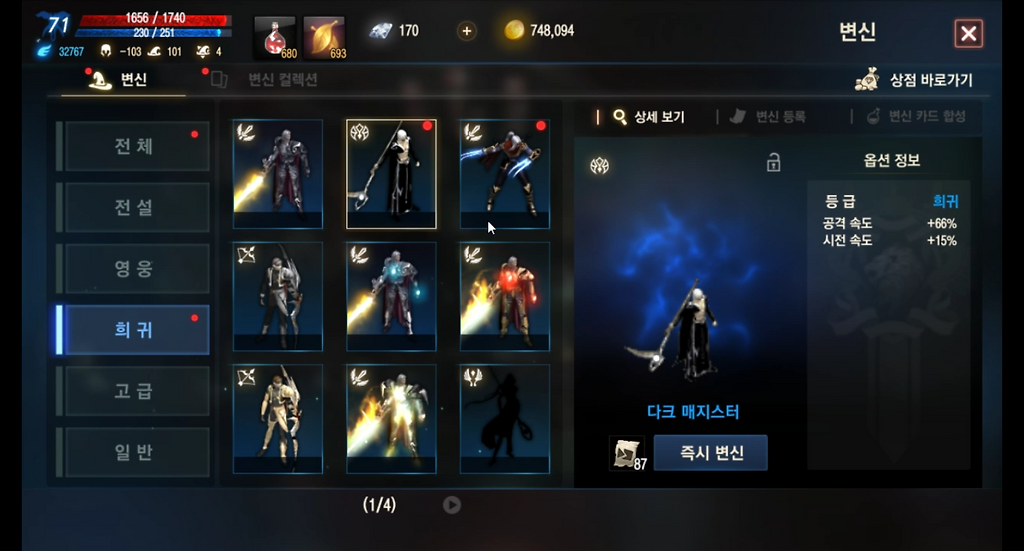 변신 카드는 다크 매지스터와 다크 쉐도우를 줬습니다.