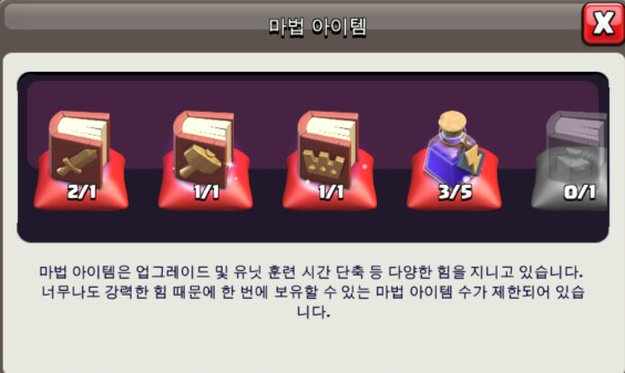 [COC] 유닛의 책(및 마법아이템) 보유가능 한도