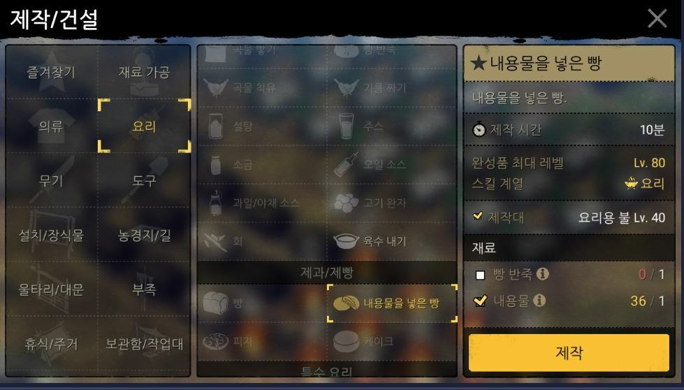 그래서 저는 고기빵은 버프를 위해 소금돌판구이를, 속든빵은 에너지를 채우기 위해 찌기를 추가로 가공합니다.