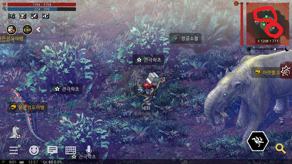 4.각섬에서는 섬레벨-2렙의 일반몬스터와 섬레벨+1의 크레이터 몬스터가 있습니다.(도마뱀 56렙 코끼리 53렙)