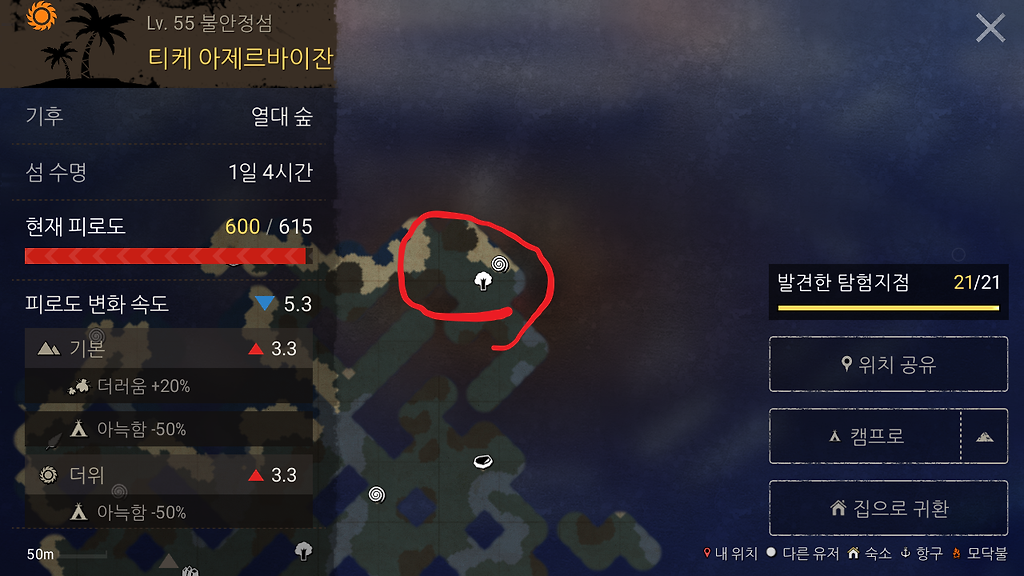 그리고 만약 크레이터 작업을 해서 더이상 맵이없다면 도시섬을 옮겨서 가면 하나도 탐험하지 않은 맵들이 나옵니다.