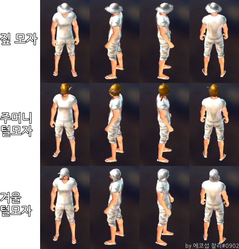 - 옷 제작 화면의 순서대로 <기초옷-정착복-탐험복-사냥복-모자> 순입니다.