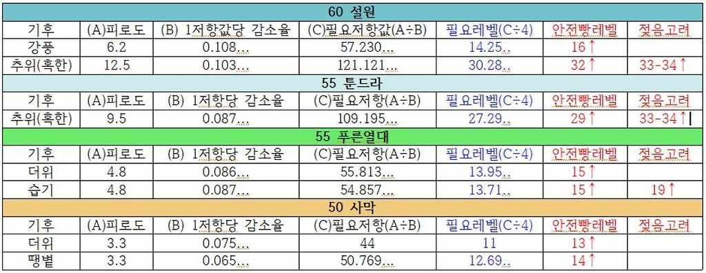 C값은 기후에 따른 피로도를 완전히 낮출 수 있는 대략적인 저항 증가 수치입니다.
