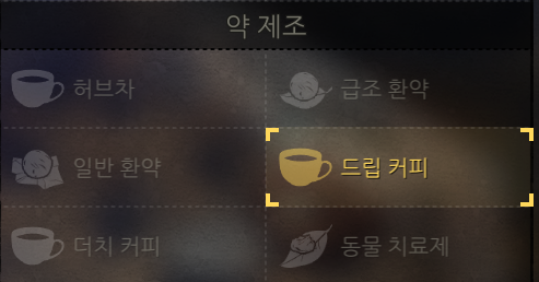 드립커피는 가열한 커피콩2개를 60레벨 제작대에서 [커피 빻기]로 빻아 물과 함께 60레벨 부엌에서 만드시면 됩니다.