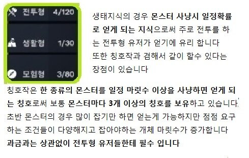 특히 전투형 유저분들에게 필수라고 생각합니다[빠른 칭호작과 생태지식작 추천]
