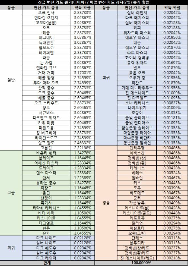 다른것 다 필요 없다. 먼저 이번에 패치된 뽑기 확률 표 먼저 보자.