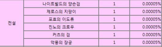 전설급 또는 신화급 아이템들이 나올 확률과 같다.