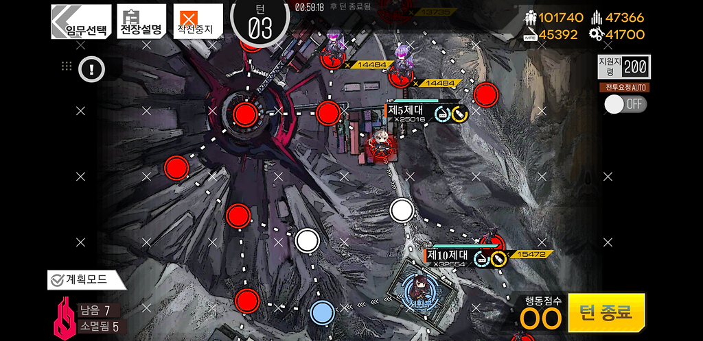 2턴 주력제대를 아래로 쭉 내립니다. 여기서는 오로지 운빨이라 다음턴을 봅니다.