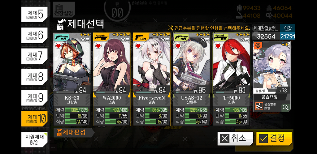 그리고 짱짱한 친구제대를 배치 (무조건 망샷으로 하세요.)를 한후 교대 (교대후 ar제대 무조건 보급!!☆☆☆보급안해서 클리어 못함...)