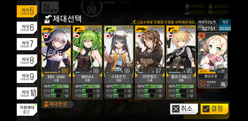 Ps. 그리폰제대의 달콤한 유혹에 넘어가지 않도록 한다. 그리폰제대에 네게브가 있는데 네게브있다고 어린아이처럼 막 선택하지 말고 후회없는 s클이 되길 바람. 이유는 지원제대가 움직인후 그리폰제대가 움직임 필자가 그리폰제대를 보스앞에 두었다가 친구제대가 안움직이는 것을 보고 리트함... 내 탄식....