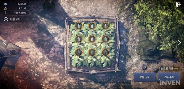 영지에서 작물 재배 시 씨앗 등급에 따라 재배 시간 및 식량 획득량이 달라집니다.