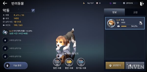 반려동물은 만복도가 낮아지기 쉬우니 사료 개수에 신경 써야 합니다.