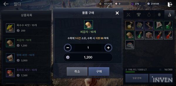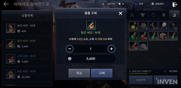 특정 상인이 판매하는 씨앗은 시간 대비 식량 효율이 더 높습니다