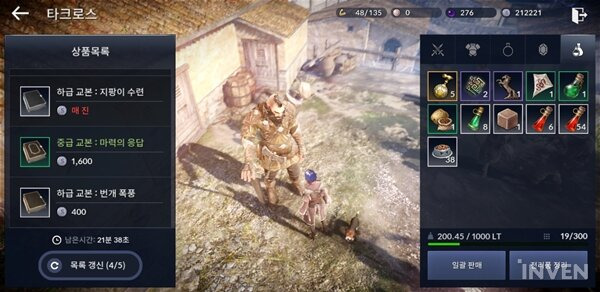 각 상인을 찾아가 5개의 무작위 상품 중 원하는 아이템을 구입합시다. (특히, 교본 상인)
