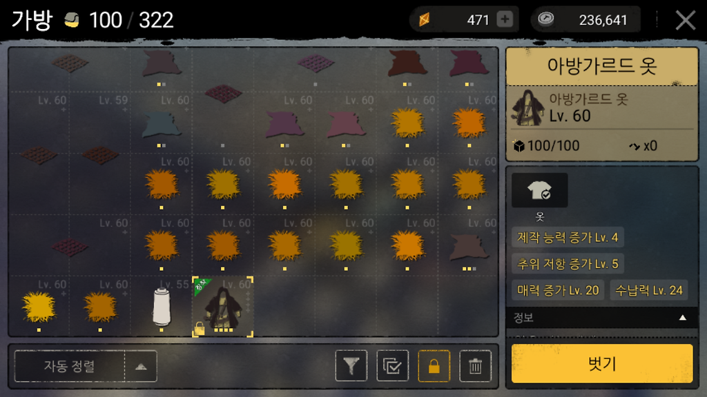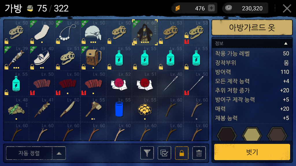 [듀랑고] 현재 나올수있는 옷들 최고 옵션 정리