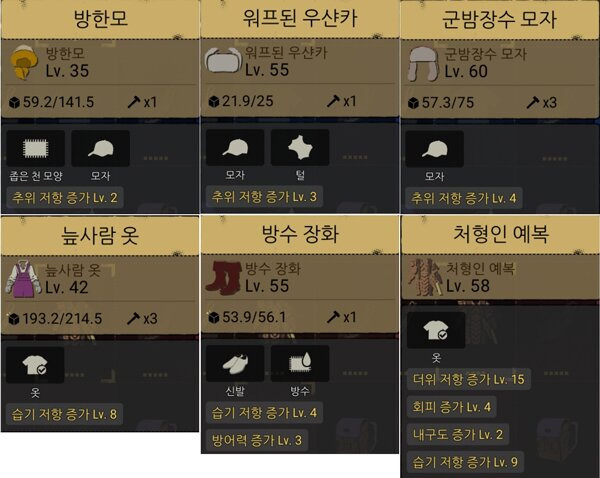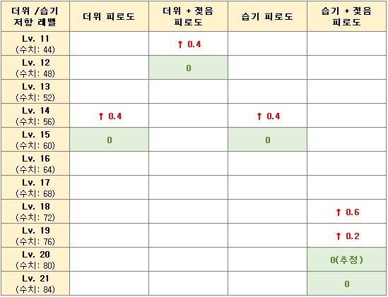 [듀랑고] 60레벨섬의 기후 피로도를 없앨수 있는 저항 수치