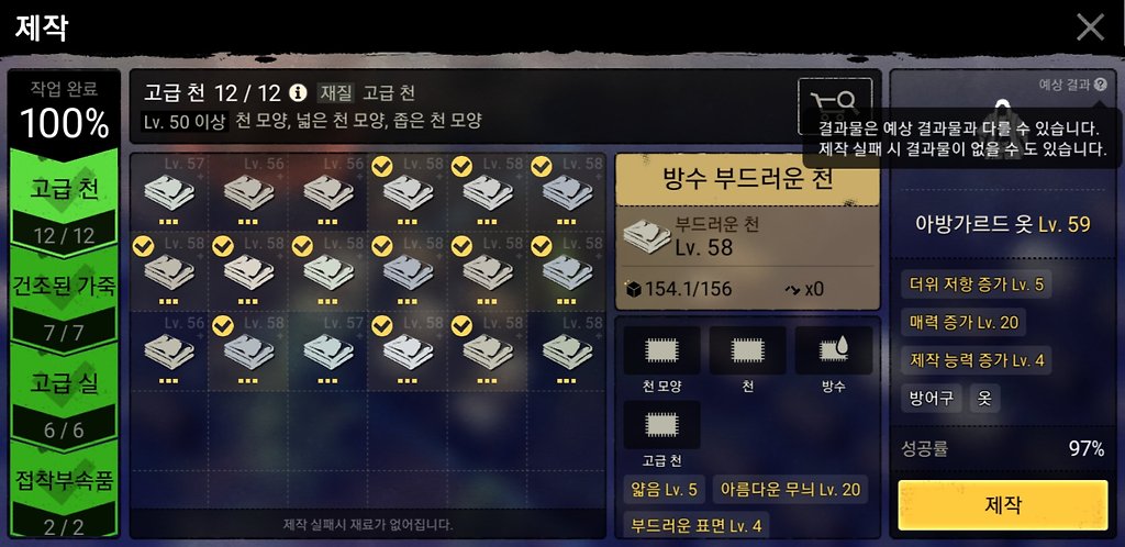 5.공정으로 나온 천과 엄선된 레벨재료를 이용하면 59열대아마 제작 또는 채집 아방가르드가 탄생하게됩니다