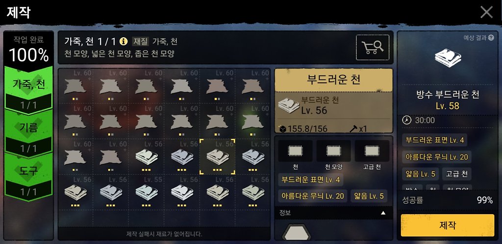 뭐가 됬든간에 만들어진 천은 개조가능 횟수가 1이며