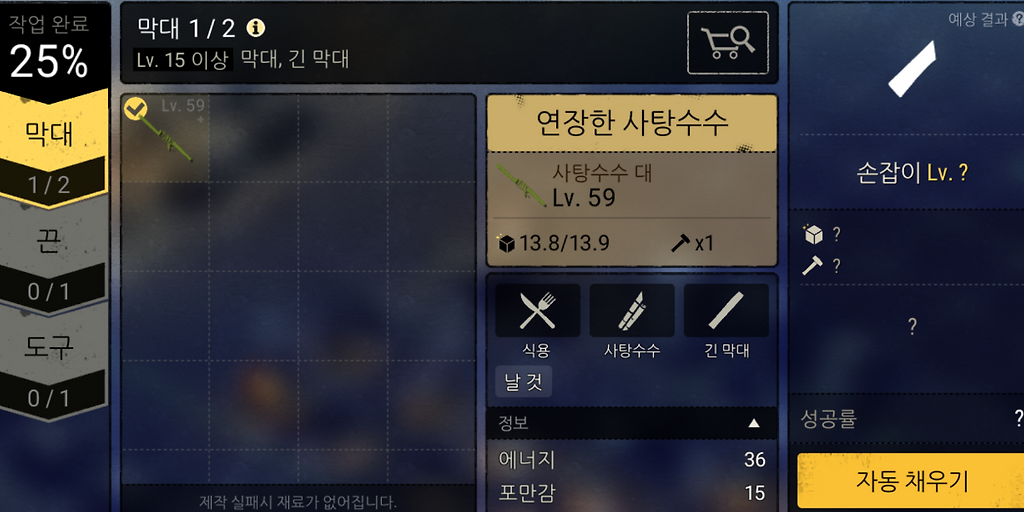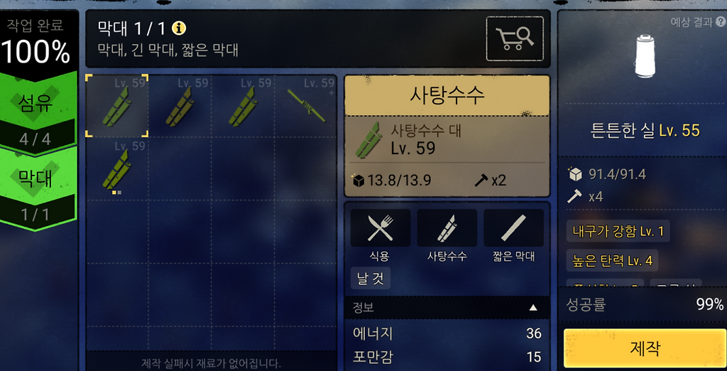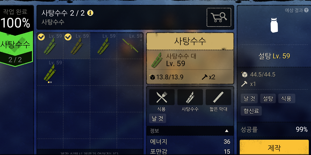 참고로 설탕으로 만들 경우 사탕수수의 솜씨 능력치는 사라집니다.