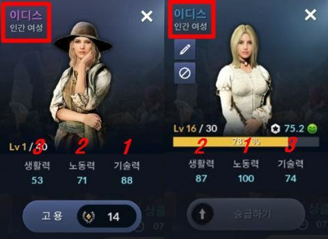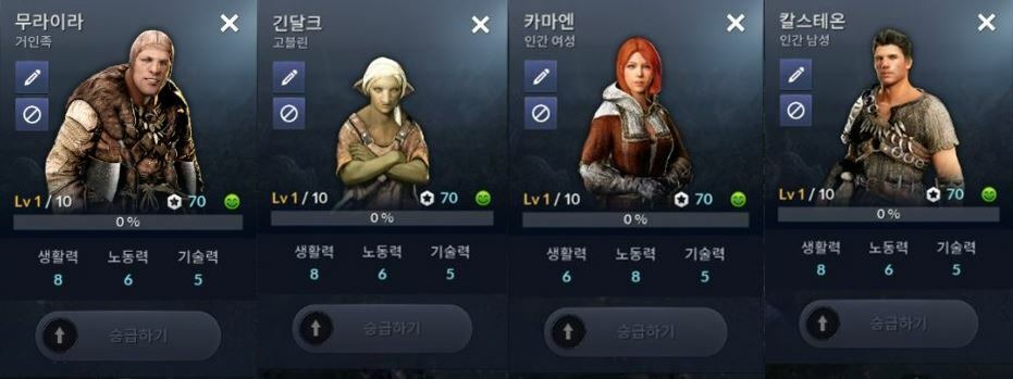 [검은사막M] 검은사막M 영지민 능력치와 효율성