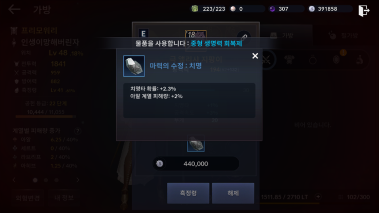 마력풍파로 치명타 올라가는거 계산해서 치명 30% 맞추세요.