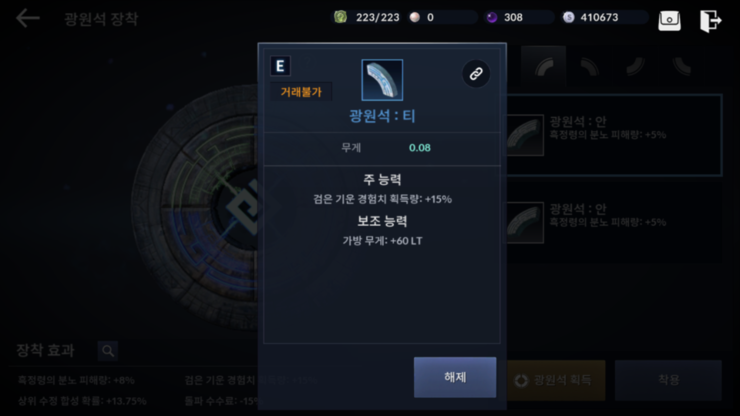파란색 광원석 부터 옵션이 달립니다.