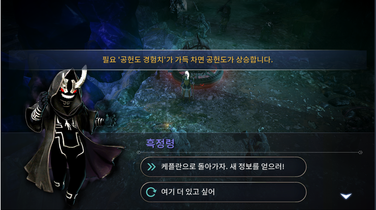 (1) 메인퀘 챕터 마지막에 흑정령이 물어보는 반복퀘 1) 다음챕터로 넘어갈래 ? 2) 여기 남을래?