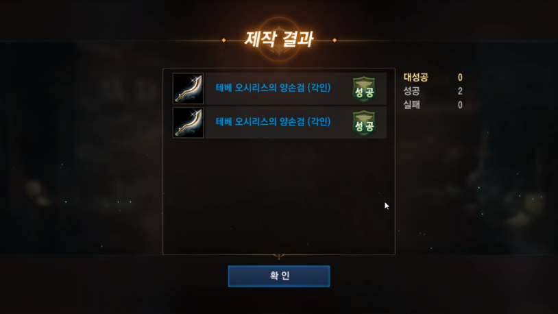 테베 오시리스의 양손검은 5에서 둘 다 축질 했는데