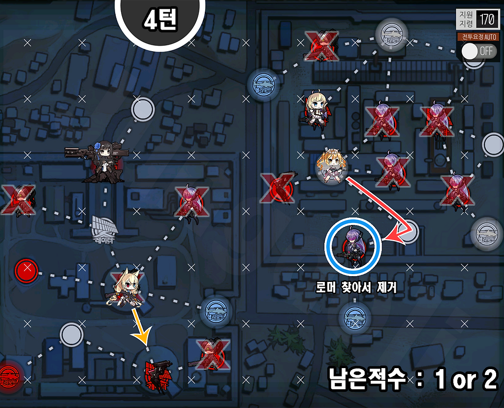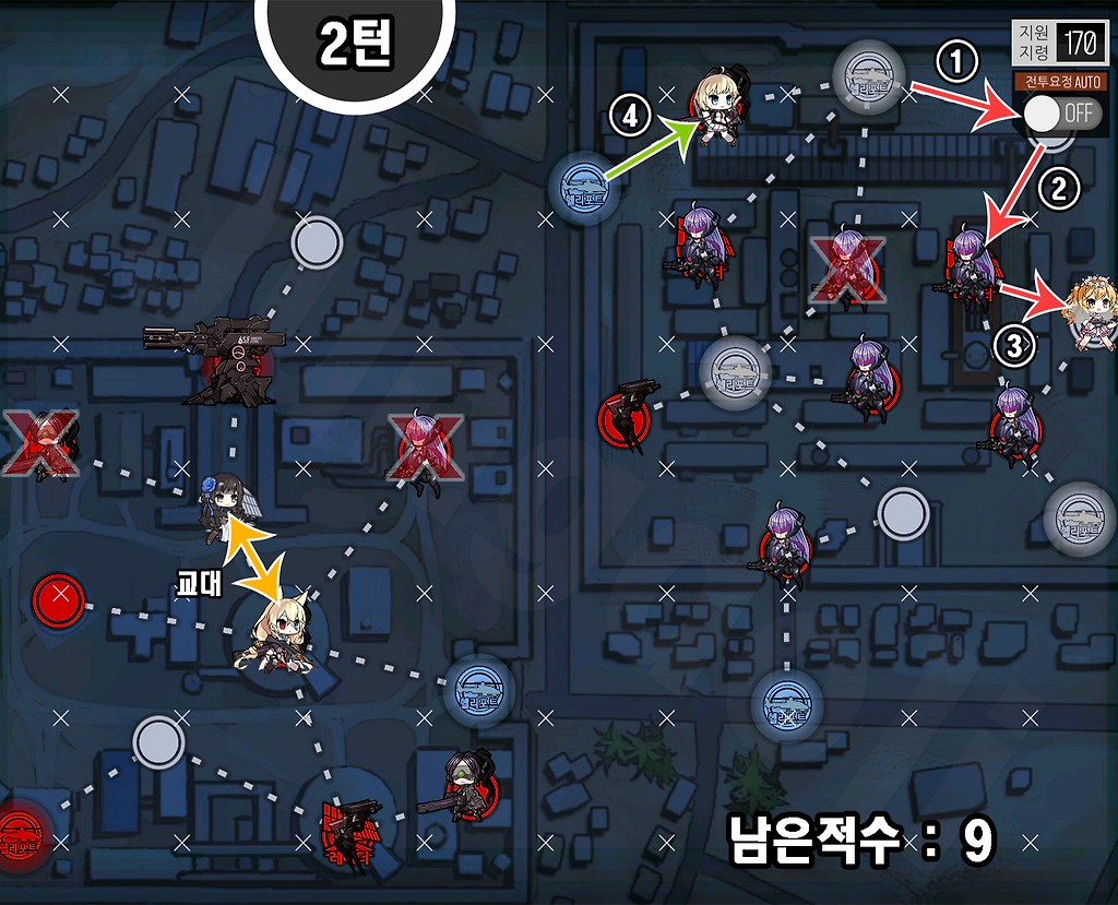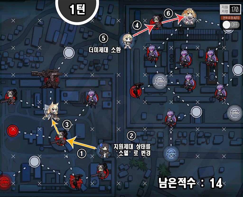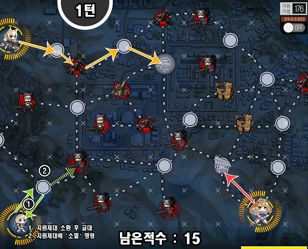 1) AR은 자가 화력스킬을 가진 전술인형을 준비.