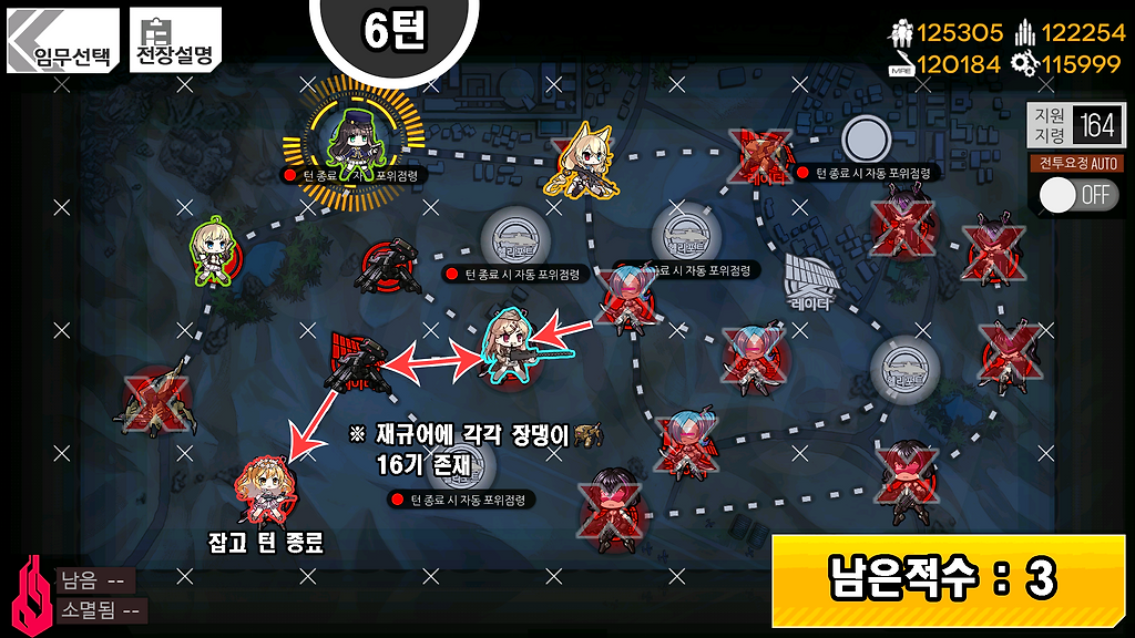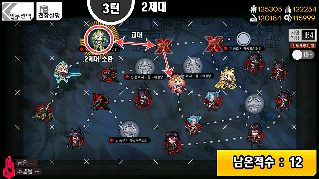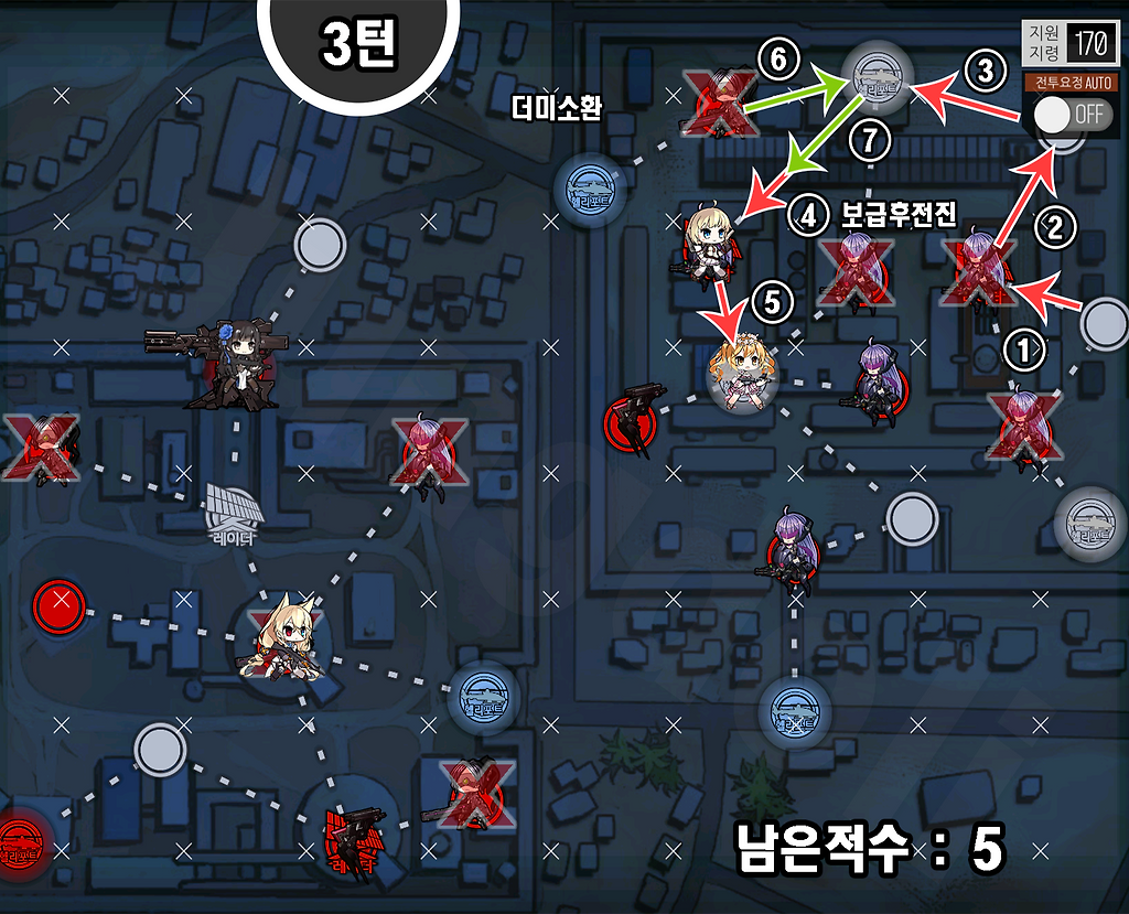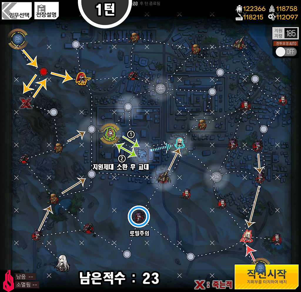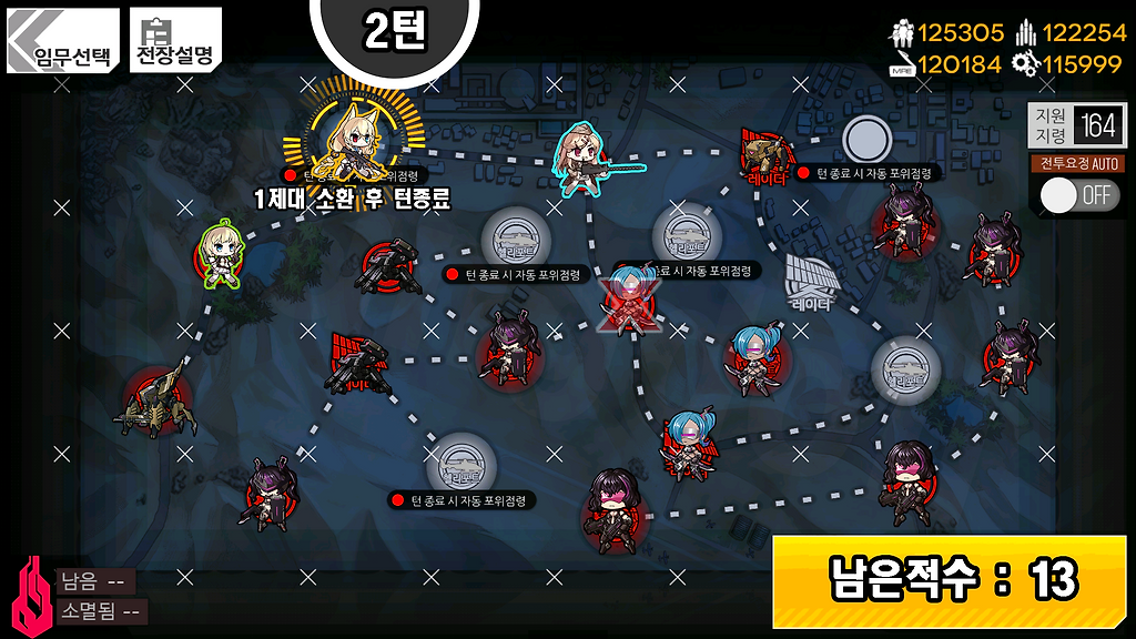 1) AR은 자가 화력스킬을 가진 전술인형을 준비.