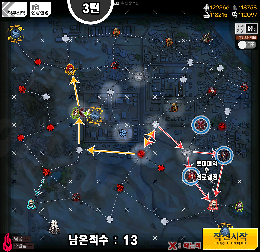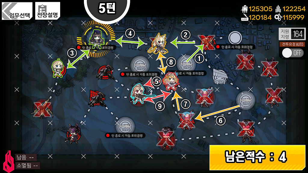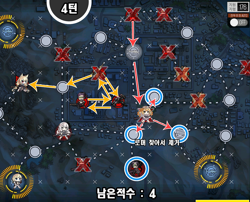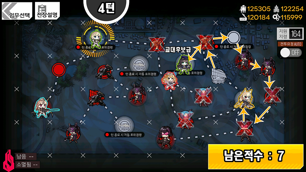 몹 23마리 중 남아있는 적을 남은 4턴 내에 제거합니다.