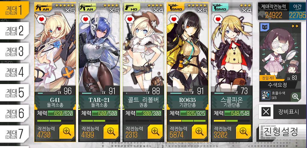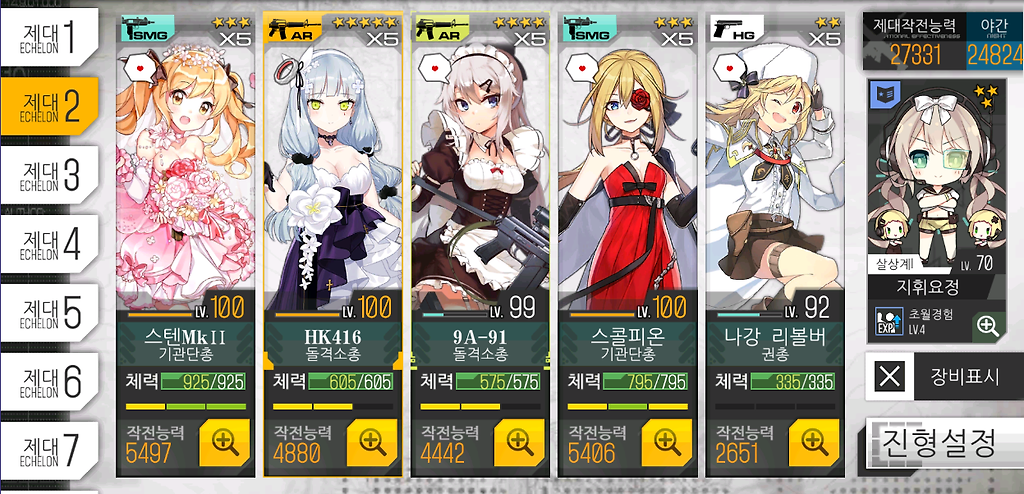 3) SMG는 6-1N ~ 6-3N 클리어 시 사용했던 전술인형으로 준비.