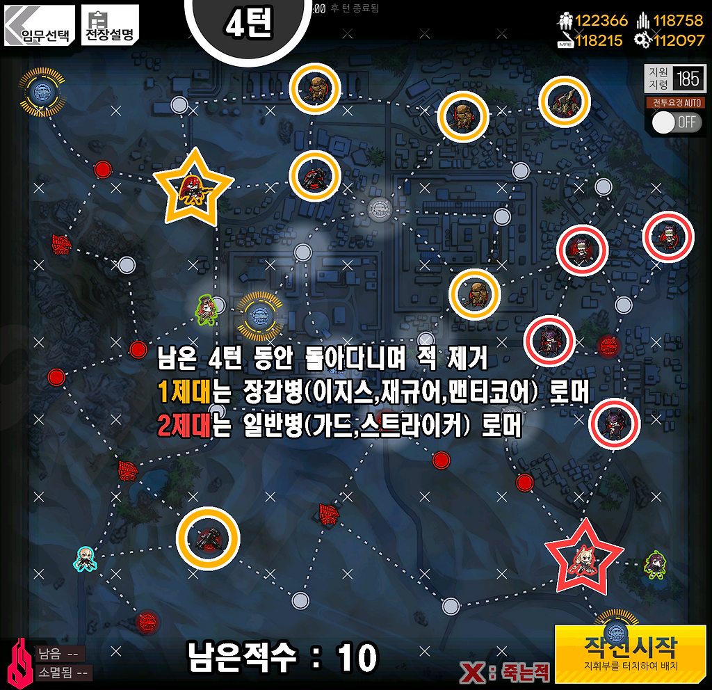 1,2제대 - 잔몹처리가 능한제대, (고화력 AR제대, MG제대 또한 추천 단, MG제대는 레드닷으로 명중보정 필수)