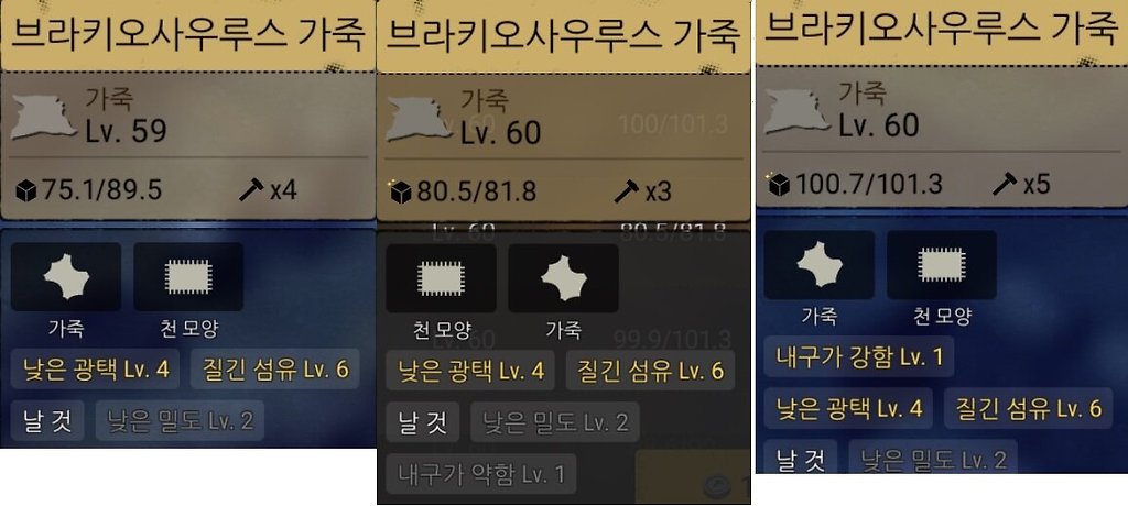[듀랑고] 브라키오 가죽 옵션별 정리(27가지)